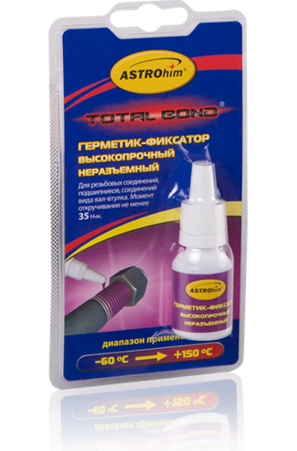 Герметик-фиксатор ASTROhim (неразборный) предназначен для герметизации и фиксации резьбовых соединений (в том числе и трубных) требующих разборки только в случае капитального ремонта. Также может использоваться для фиксации и герметизации соединений вида вал-втулка, фиксации подшипников без прессовой посадки.