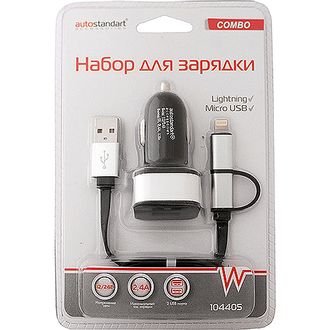 Набор 2 в 1 для зарядки мобильных устройств, ток зарядки 2,4А, AUTOSTANDART
